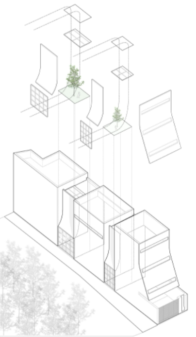 Những khu tiểu cảnh được đặt những chiếc cây sẽ lắc lư theo những cơn gió khi được hứng từ mọi hướng của ngôi nhà.